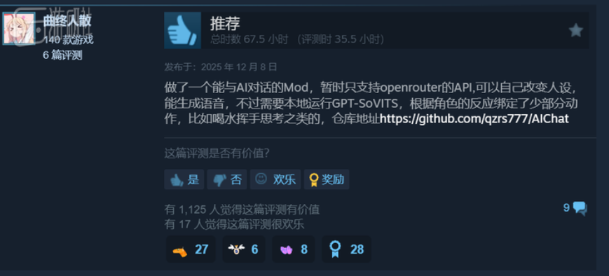 作为一款剧情导向的游戏,《放松时光》的故事容量终究有限,有玩家在通关后不舍得结束从而制作了AI对话模组试图延续互动,制作团队表示理解,但也坦诚地标明他们更希望玩家珍视的是那段曾与聪音共同专注、彼此激励的真实时光。这种设计也折射出一个值得思考的议题:如何让一段虚拟关系留下真实的情感印记?答案或许就在于细节的把握与情感的真实传递。